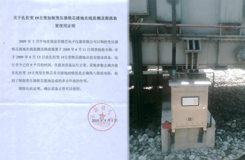 山東省棗莊500KV變電站安裝運(yùn)行變壓器鐵芯接地在線監(jiān)測及限流裝置